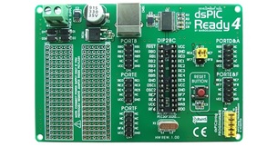 dsPIC-Ready4 Board features a USB to serial UART interface